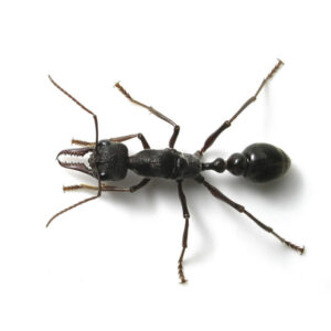 Also called bull ants, bulldog ants are among the largest and most aggressive ants in Australia. Most species are 8–10 mm long, but some grow much larger. Many have bright red or orange markings on their head or abdomen, along with large eyes and powerful jaws. Some smaller species are known as “jumper ants” because they leap aggressively toward intruders, though they should not be confused with the jack jumper ant.